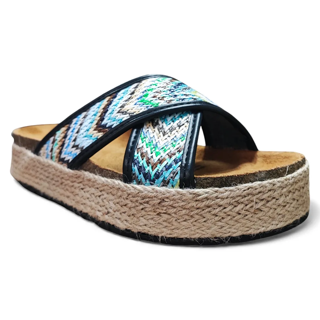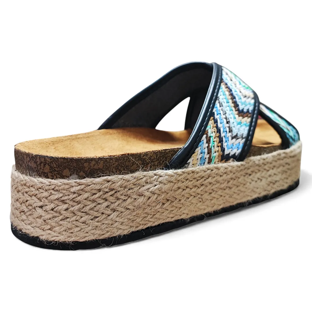 Sandalia cruzada con diseño textil
