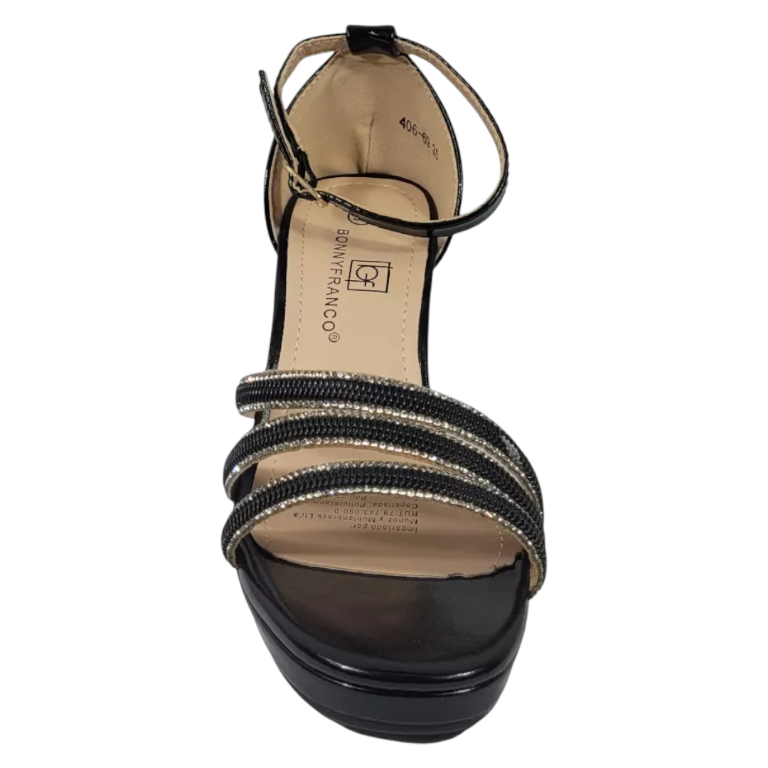 Sandalia Mujer Taco Alto 406 Negra Bonnyfranco