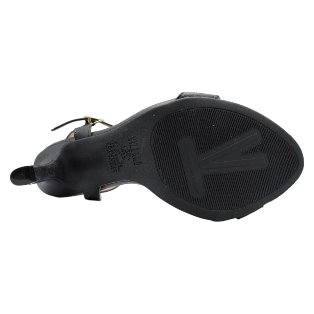 Sandalia Mujer Taco Alto Negro Pulsera Elegante Vizzano