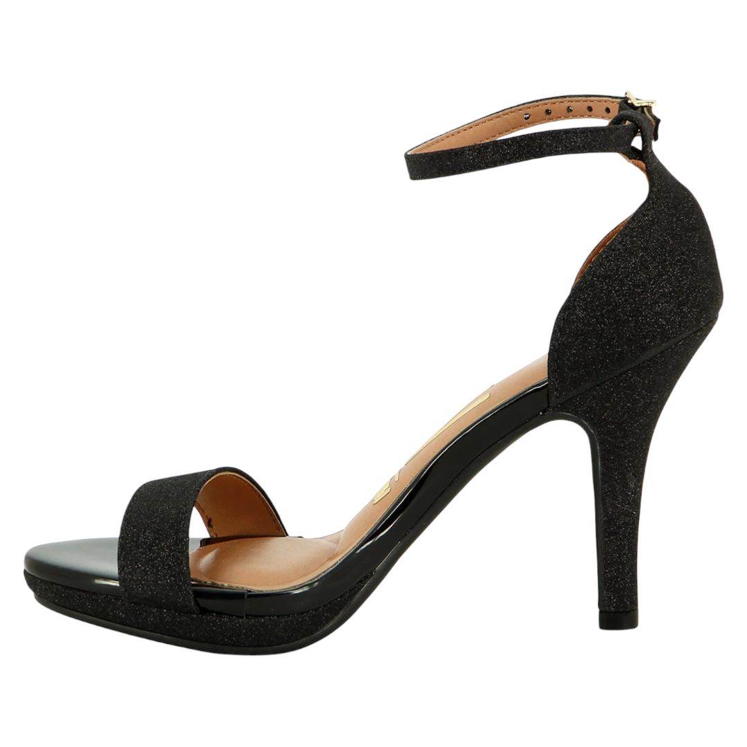 Sandalia Mujer Taco Alto Tela Shine París Negro Vizzano