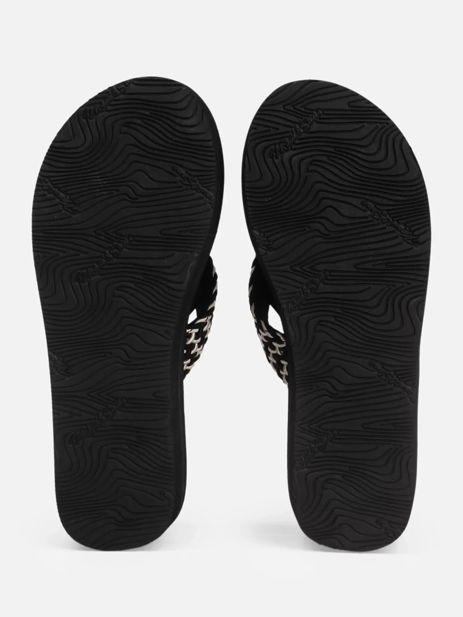 Diseñadas para quienes buscan un look moderno y atrevido sin renunciar a la comodidad. Este modelo destaca por su strap tejido en mezcla de algodón y poliéster, que aporta estilo artesanal y durabilidad. La suela de goma ligera y la plantilla de EVA brindan soporte y suavidad en cada paso, convirtiéndolas en una opción ideal para el verano.