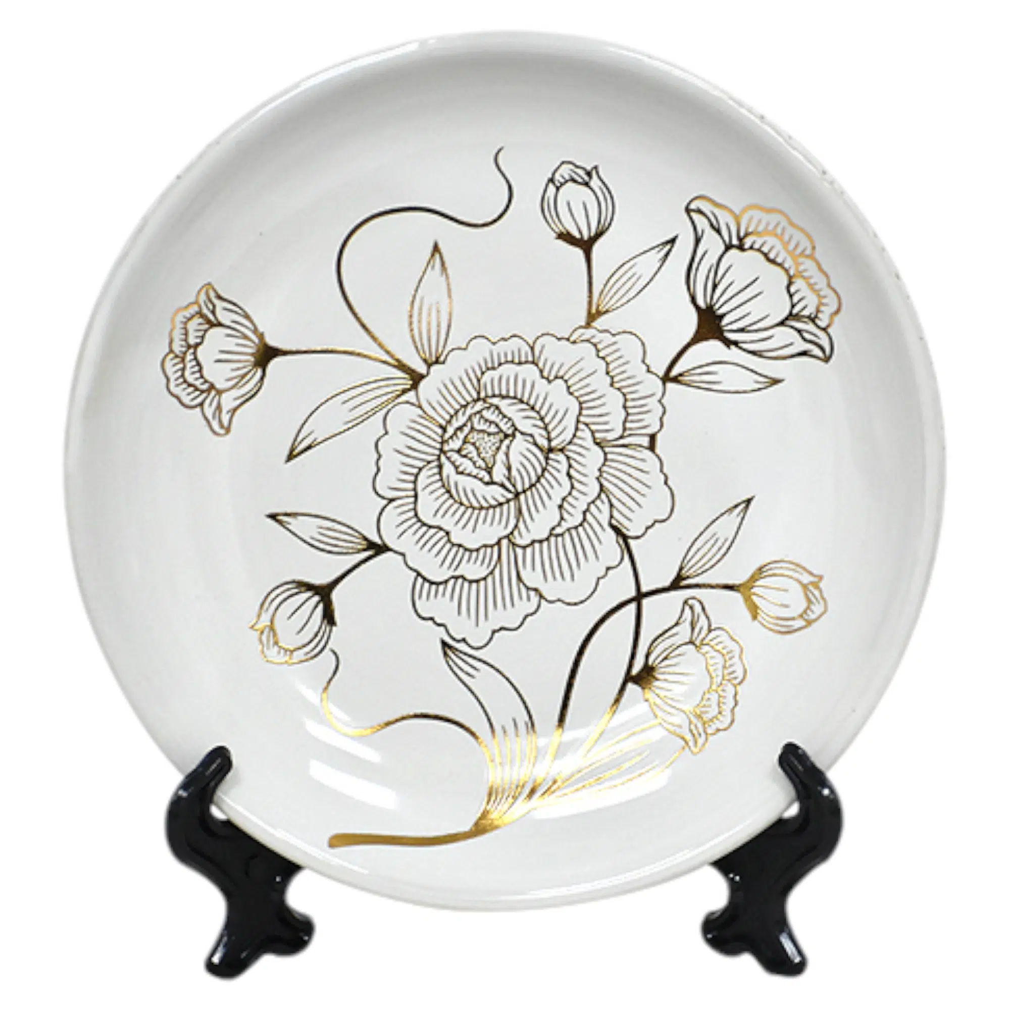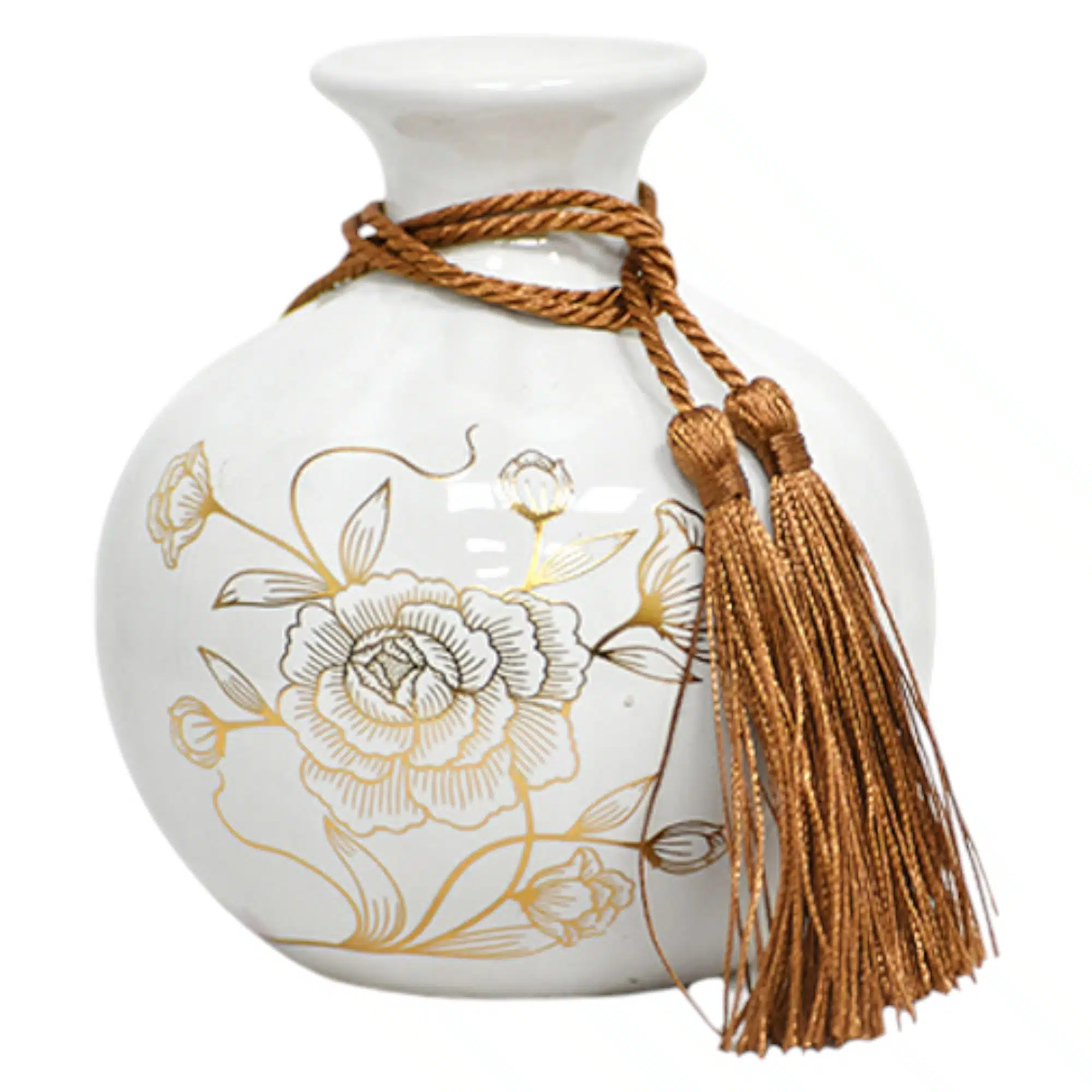 Te presentamos este set de floreros y plato de cerámica, ideales para decorar cualquier espacio de tu hogar con diseños únicos. Con el estampado en color oro sobre fondo blanco, este set de floreros y plato resulta especialmente lúdico, sofisticado y decorativo. Es ideal para exhibir pequeños ramos o una flor sola.