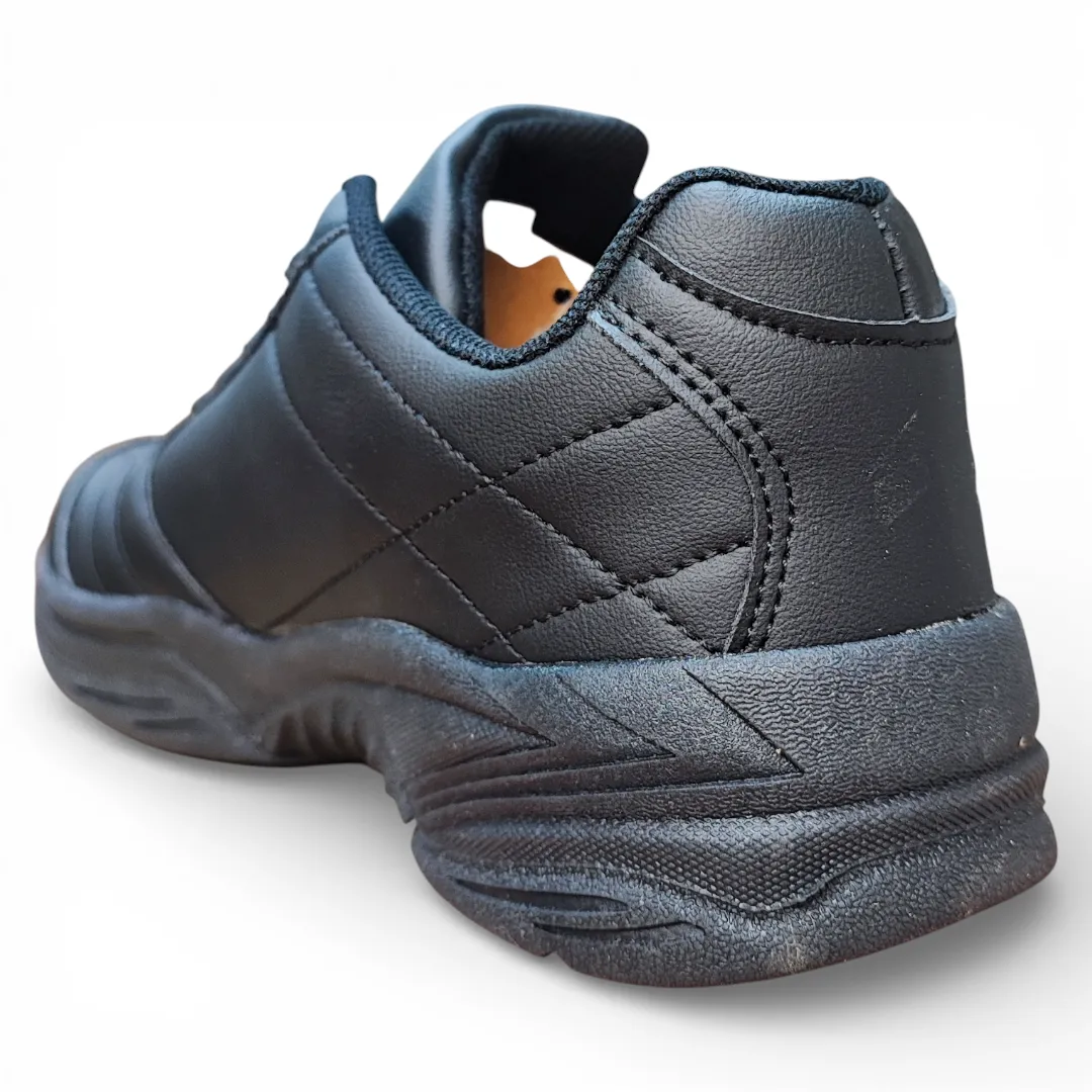 Este modelo cuenta con exterior sintético de alta durabilidad, fácil de limpiar y preparado para el uso intensivo. Su diseño clásico con cordones ofrece un ajuste seguro, mientras que la entresuela acolchada ayuda a absorber impactos y entregar mayor confort durante toda la jornada. La suela de goma brinda buen agarre y estabilidad en superficies escolares.