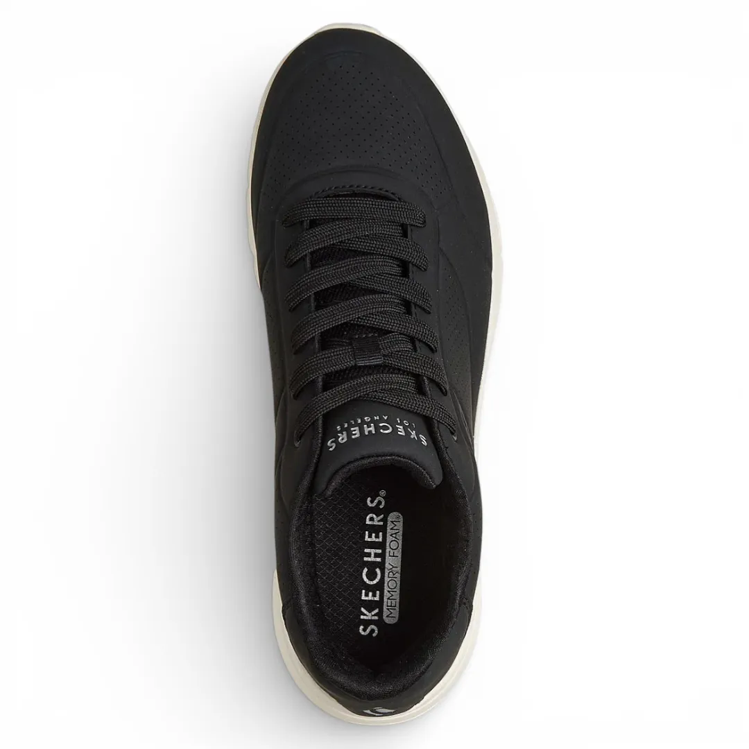La zapatilla Skechers Uno Flex Echo Air para hombre combina un diseño urbano moderno con gran comodidad para el uso diario. Su capellada sintética con perforaciones permite una mejor ventilación, mientras que su estilo limpio en color negro facilita combinarla con distintos outfits casuales.