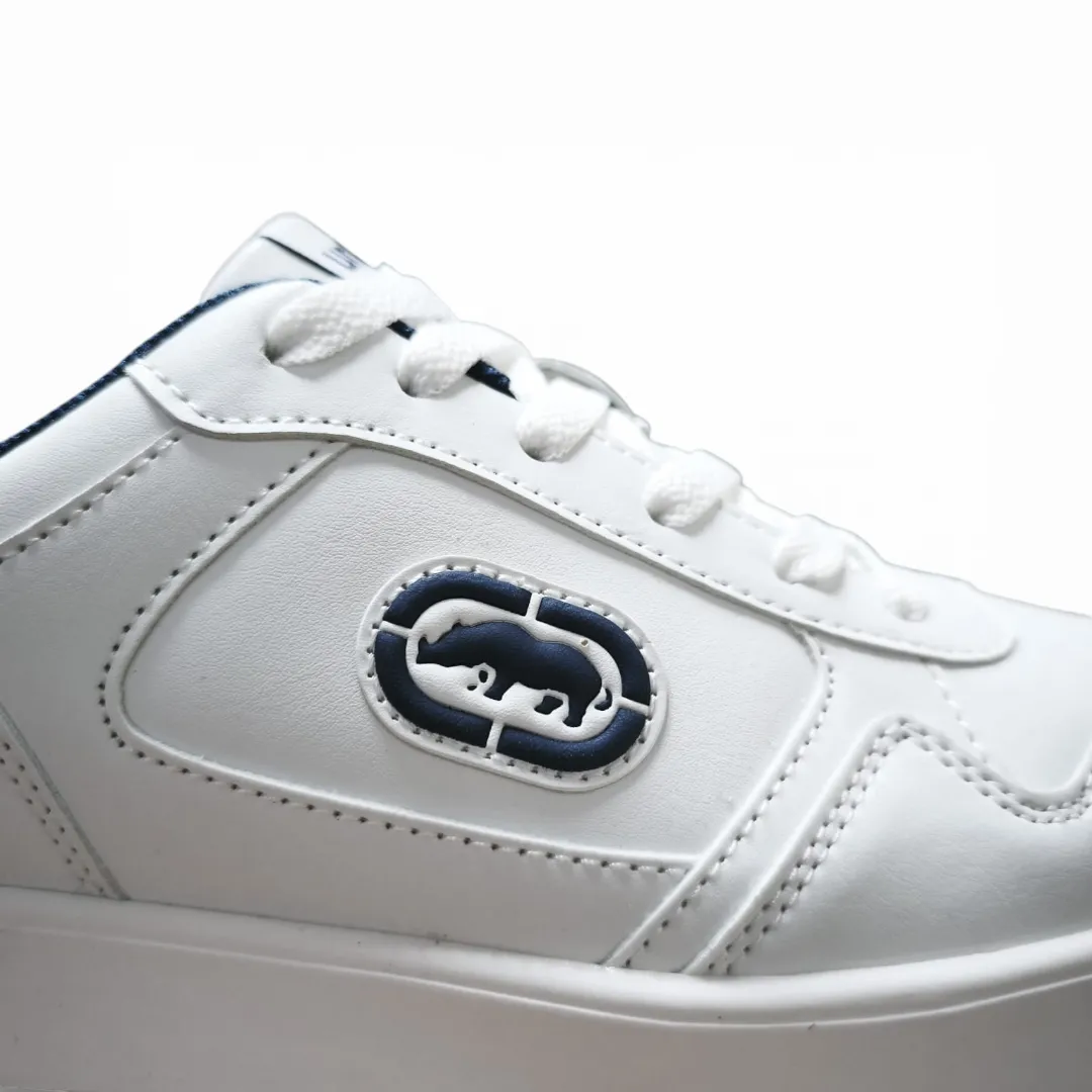Su capellada blanca con detalles en azul entrega un look limpio y versátil que combina fácilmente con jeans, buzos o ropa casual. El clásico logo Ecko Unltd en el lateral aporta identidad streetwear y un estilo urbano juvenil.