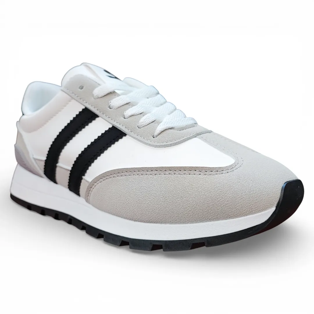 Zapatilla Mujer Blanca Urbana Franjas Negras Everix
