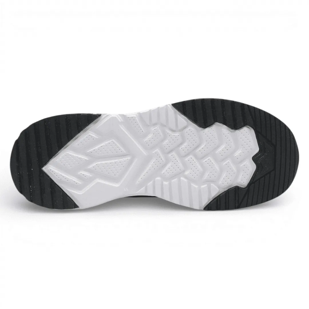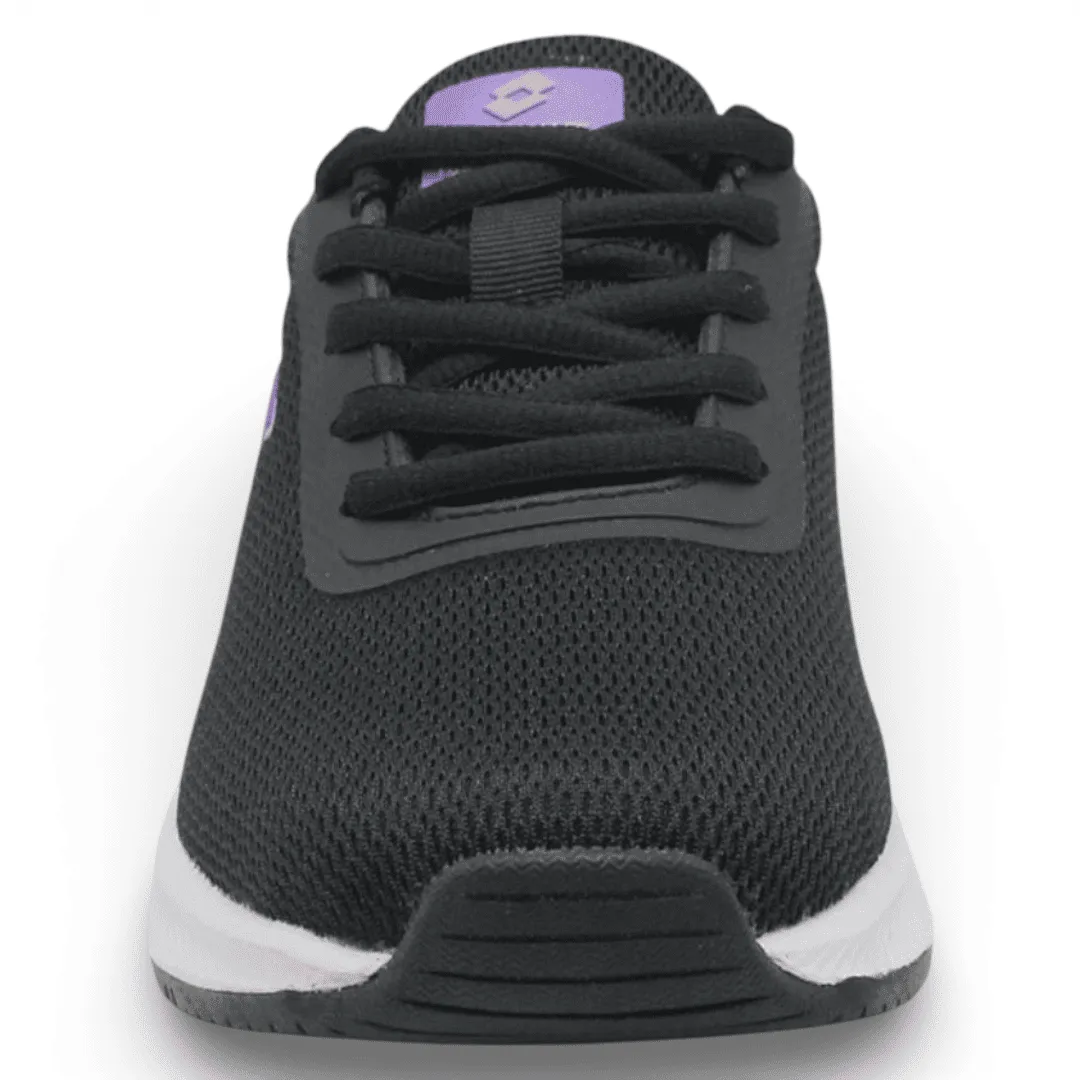 La mediasuela de espuma brinda una pisada suave y amortiguada, ayudando a reducir el impacto durante la carrera o el movimiento constante. Su suela de goma entrega buena tracción y durabilidad, mientras que el diseño en negro con detalles morados aporta un look deportivo y femenino, fácil de combinar.