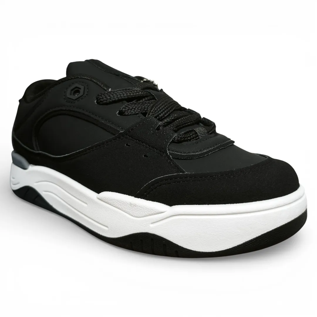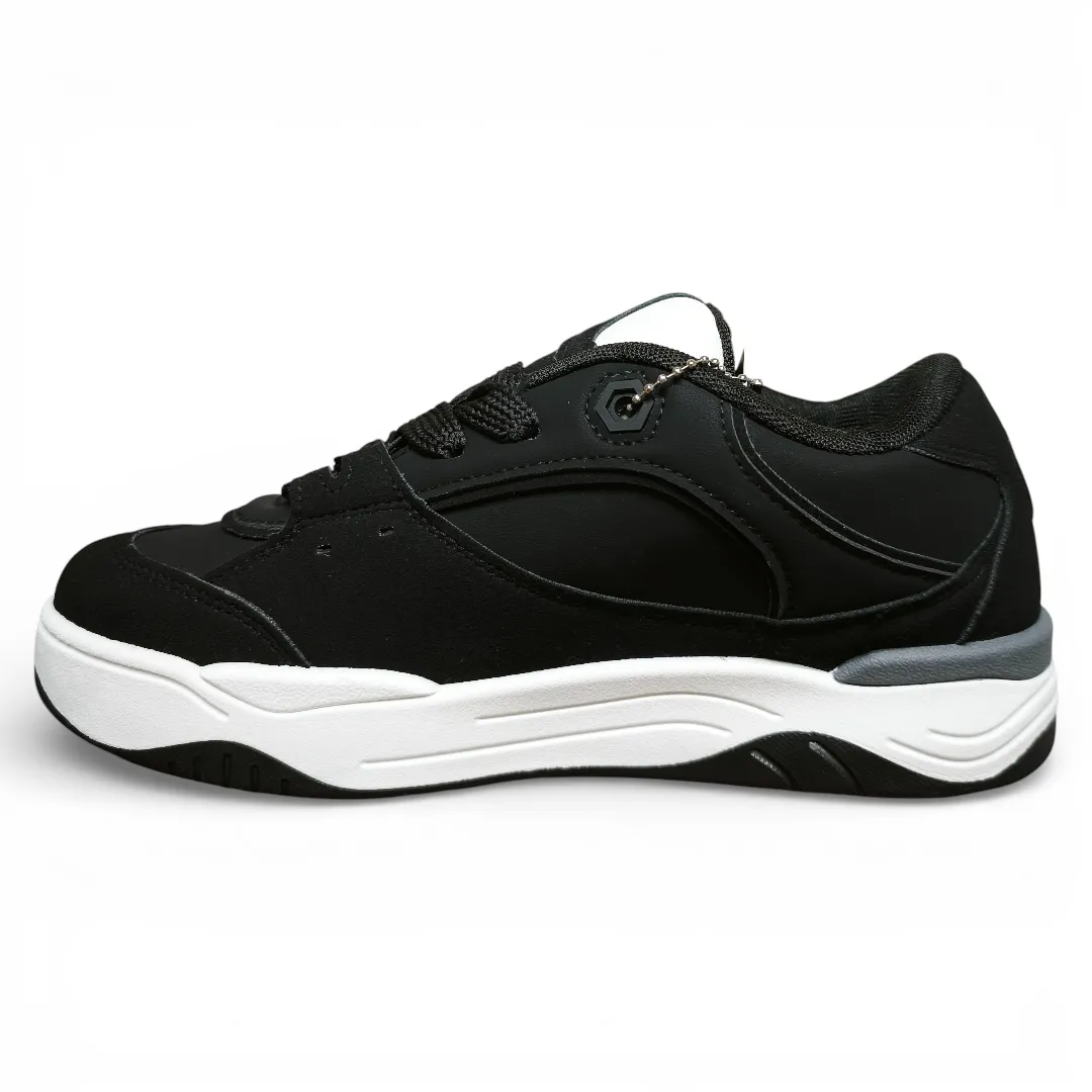 Zapatilla New Walk para mujer de estilo urbano y deportivo, ideal para el uso diario. Presenta un diseño en color negro con detalles blancos, fácil de combinar y con una estética moderna.