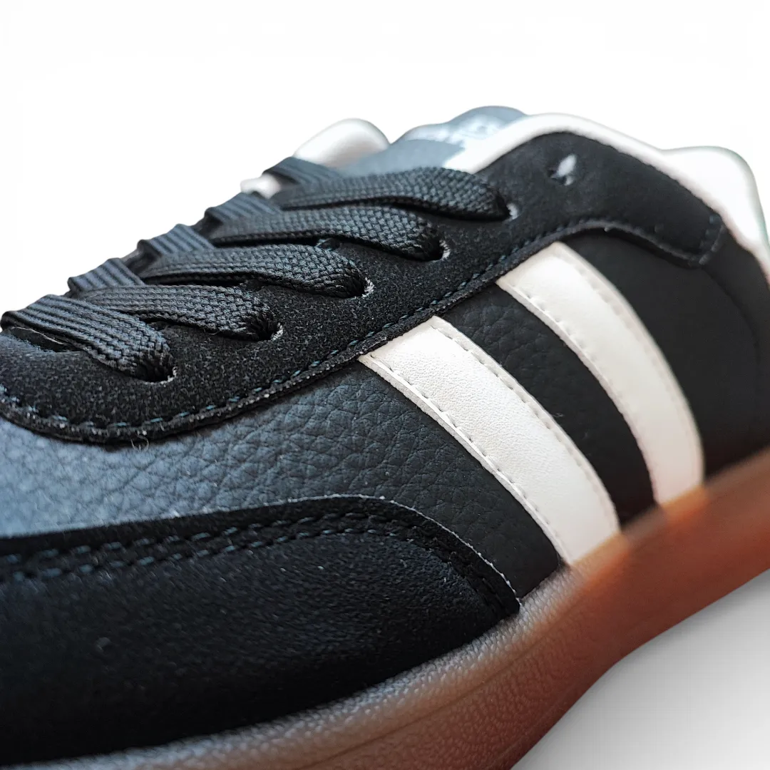 Zapatilla Mujer Negra Franjas Blancas Suela Caramelo Everix