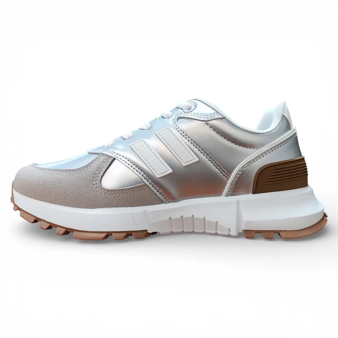 Zapatilla Mujer Urbana Plateada Diseño Deportivo Everix