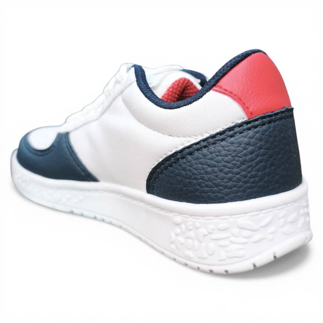 Estilo y personalidad para los más pequeños. Las zapatillas CRT302 de Dino Park combinan un diseño clásico blanco con navy y el icónico parche bordado de cocodrilo, perfectas para el día a día escolar y actividades al aire libre. Fabricadas en Brasil con materiales de alta calidad.