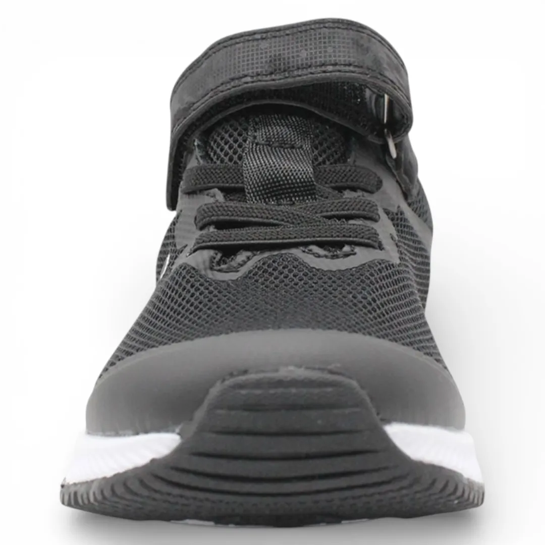 La Zapatilla Niño Challenge JR Negra Blanca es un modelo ligero y resistente, ideal para el uso diario y actividades escolares. Su capellada de malla respirable ofrece comodidad durante todo el día, mientras que el cierre con velcro facilita un ajuste rápido y seguro. La suela de goma entrega buena tracción y estabilidad, perfecta para juegos, caminatas y movimiento constante. Un diseño cómodo, funcional y duradero para niños activos.