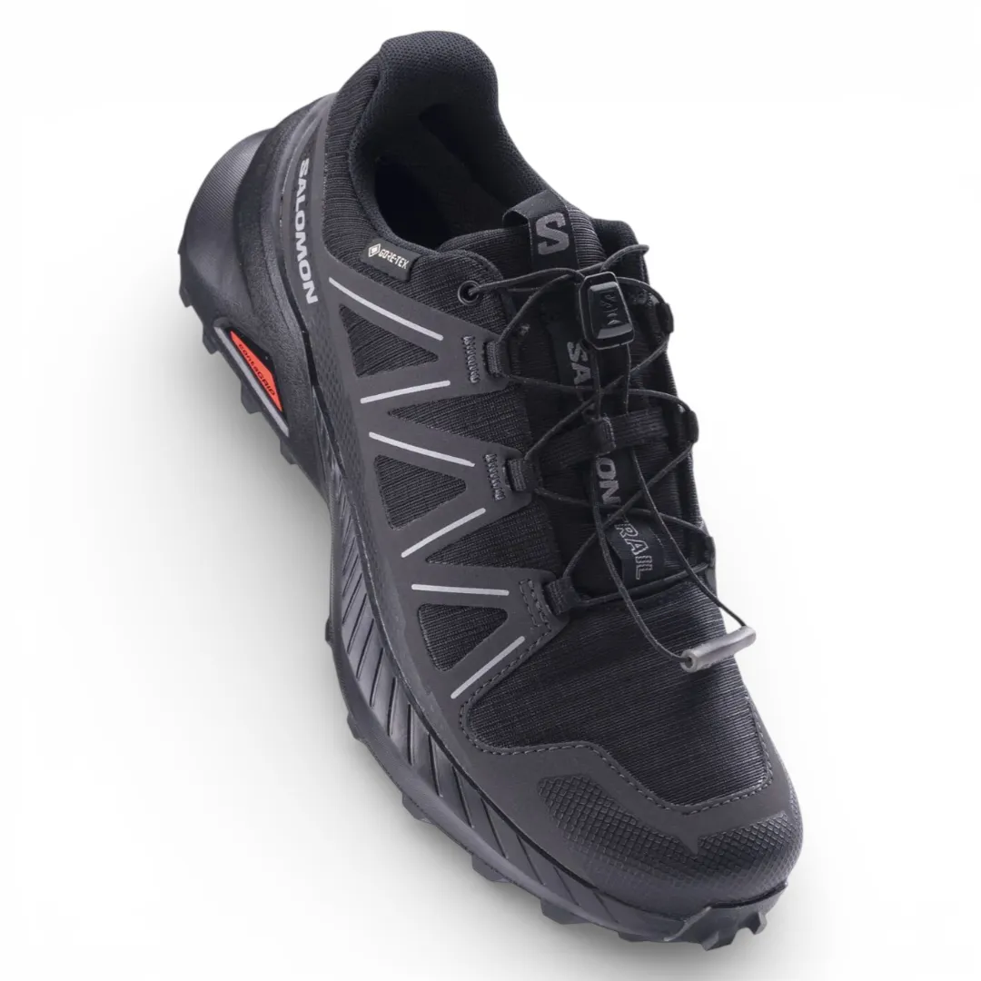La Zapatilla Trail Hombre Speedcross Peak GTX Salomon está diseñada para ofrecer máximo agarre y protección en terrenos exigentes. Incorpora membrana Gore Tex impermeable que mantiene el pie seco en condiciones húmedas, ideal para trail running y trekking técnico.