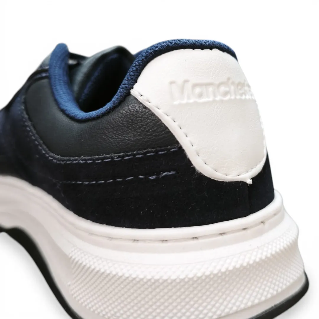 Zapatilla hombre urbana Manchester modelo Axis en color azul marinho, diseñada para brindar comodidad, estilo y durabilidad en el uso diario. Fabricada en Brasil con materiales de alta calidad, es ideal para quienes buscan una zapatilla versátil y moderna.