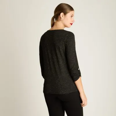 Polera Negra Manga Larga Roll Up con Cuello V Ldp