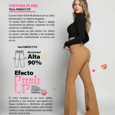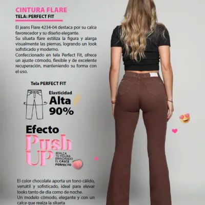 Jeans Elle Cafe Claro Cintura Flare Mohicano