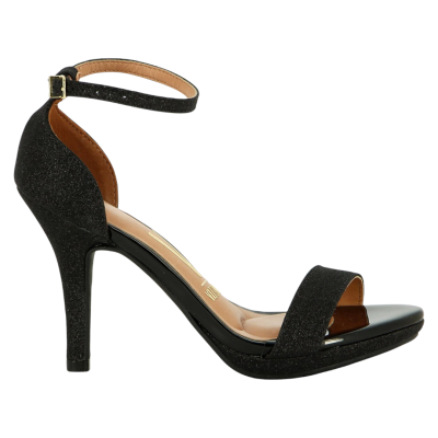 Sandalia Mujer Taco Alto Tela Shine París Negro Vizzano